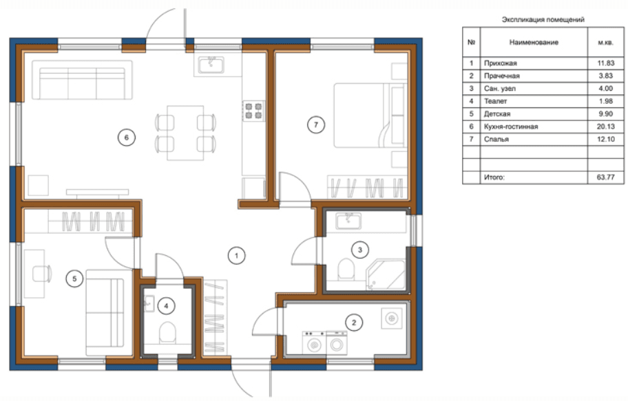 Уютный стильные дом Классик 3 - 63 м2