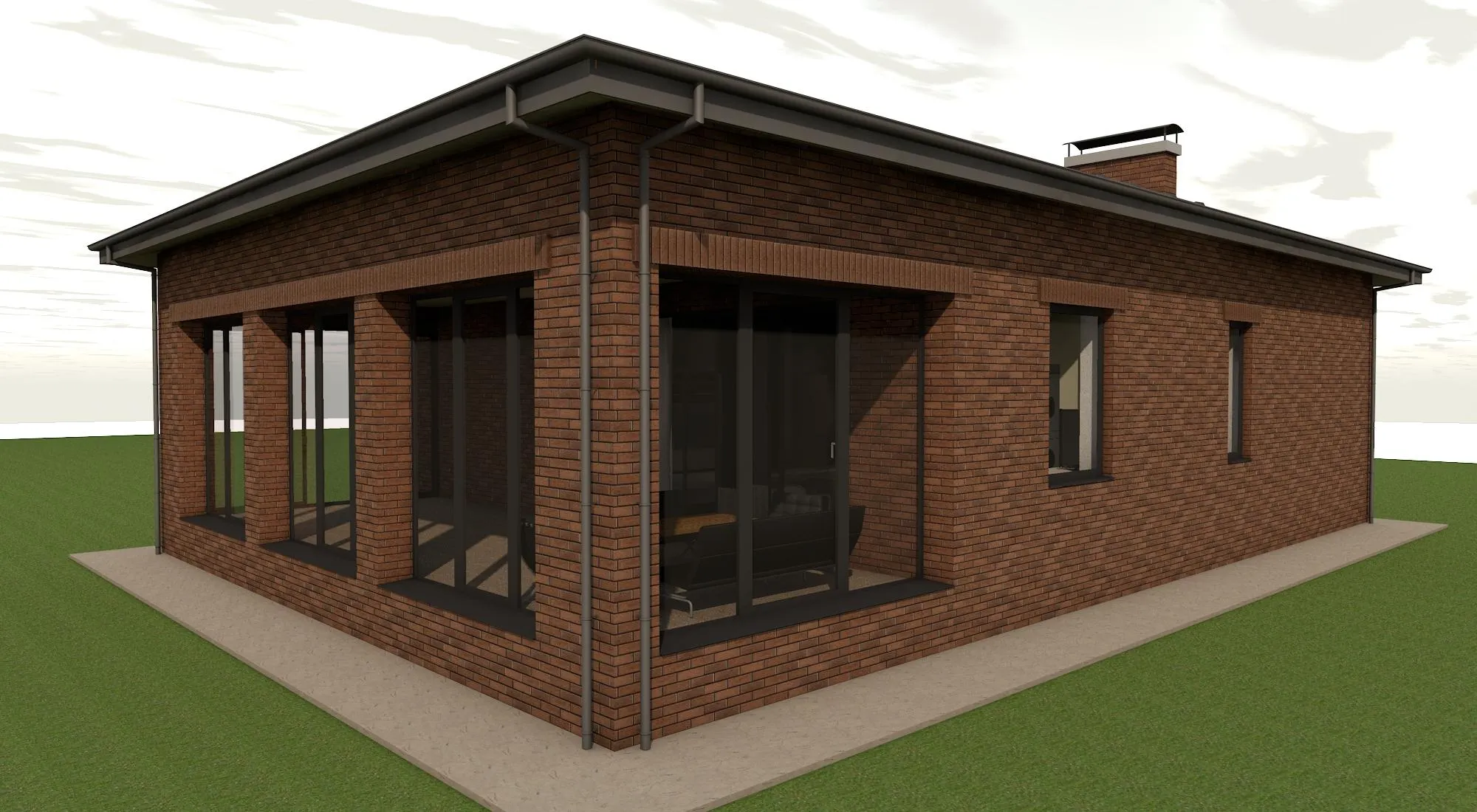 Кирпичный одноэтажный дом.